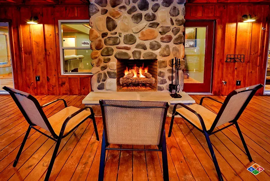 Covered Deck with wood burning fireplace