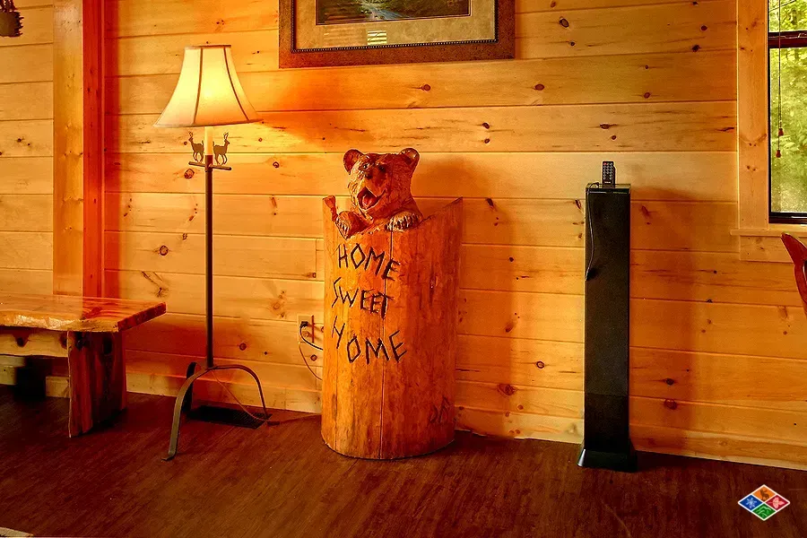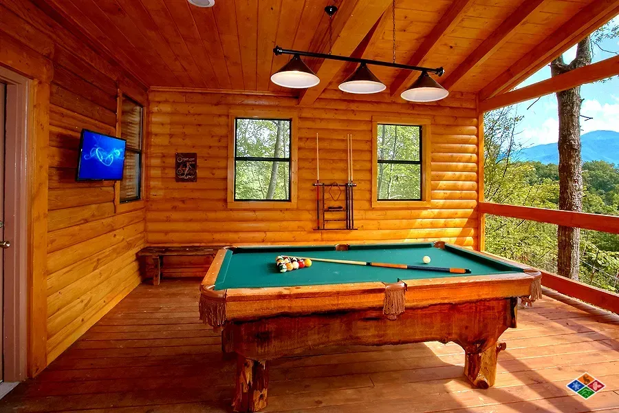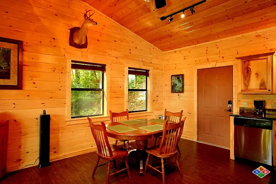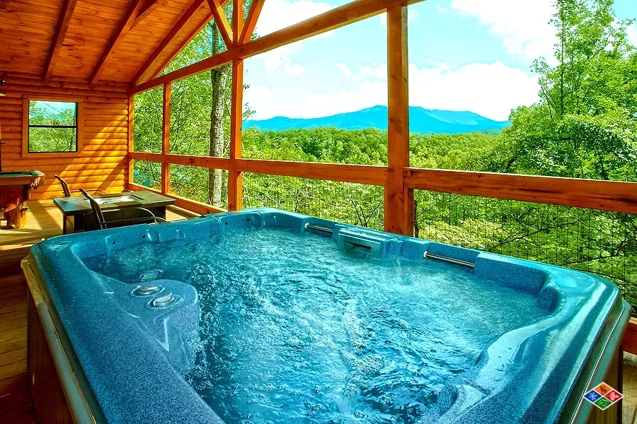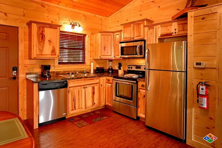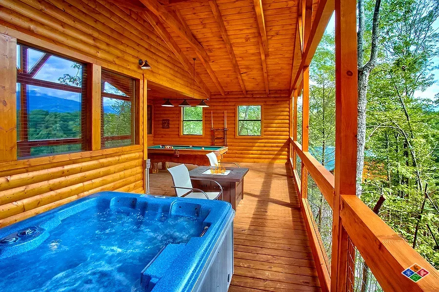 Enjoy incredible views with that someone special at Love Me Tender. Relax in the outdoor living room while enjoying the views and staying warm next to the outdoor fire pit. Relax in the 101 degree hot tub after a long day of hiking. Prepare in cabin meals in the fully equipped kitchen, enjoy free WIFI and then relax in your great room. Retire to your King Suite with fireplace and, yes, more views! Treat yourself to a rain shower and massage jets in the Suite shower.