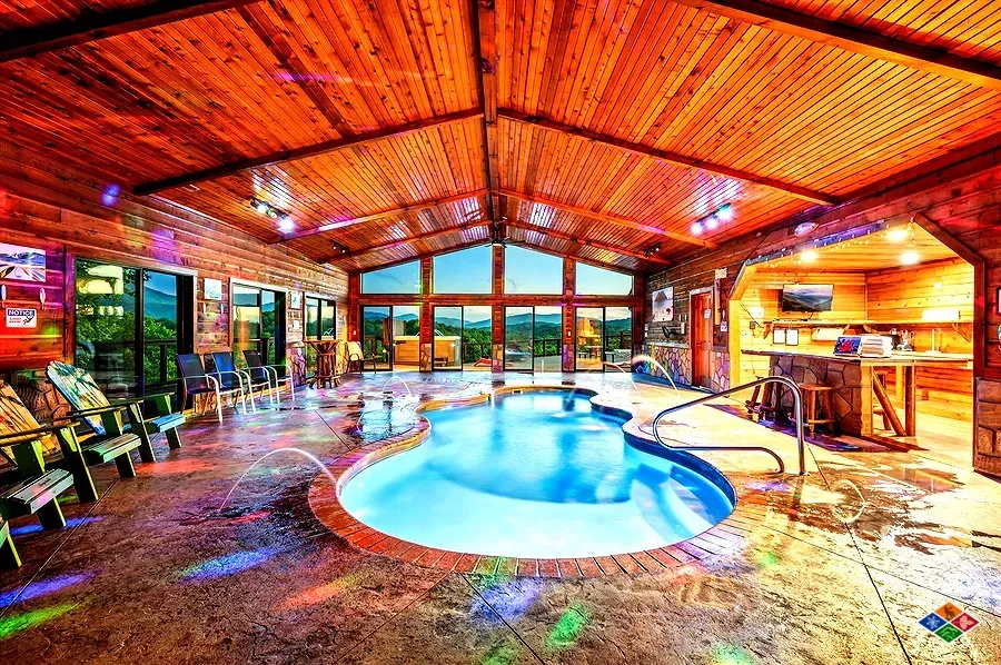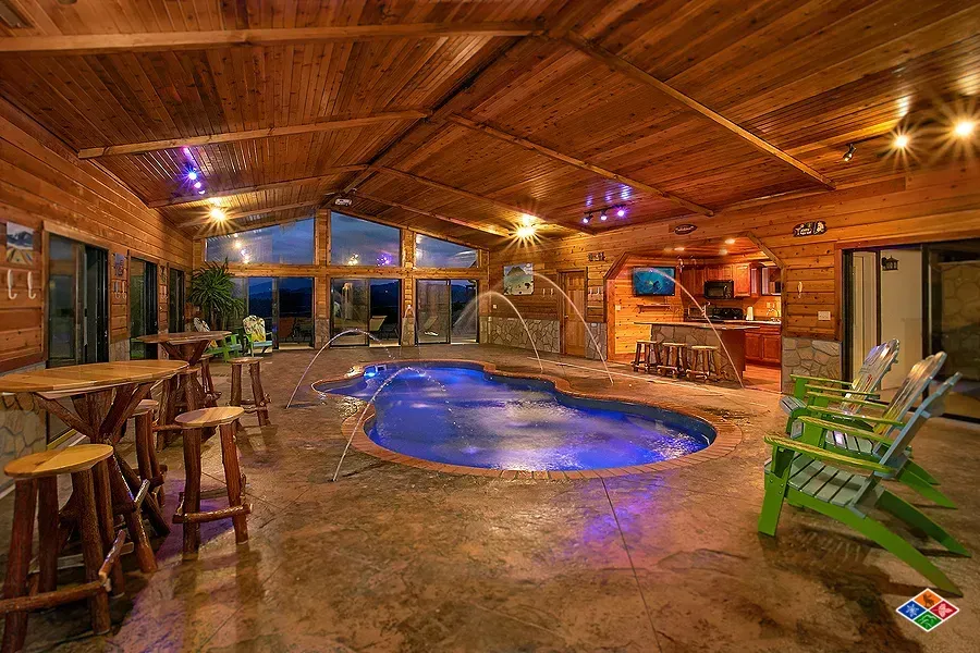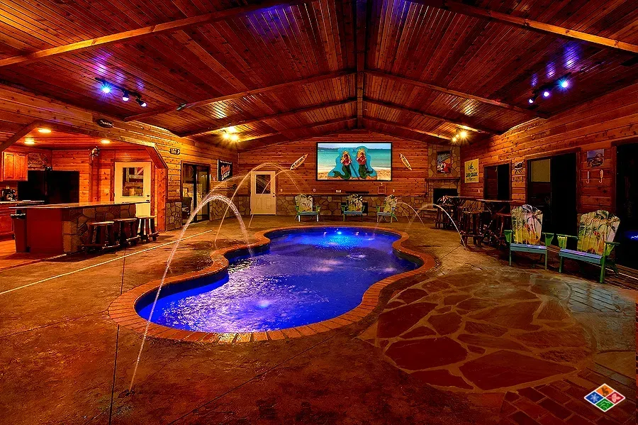 Enjoy an amazing private indoor heated pool house with pool, hot tub, theater and kitchen.
