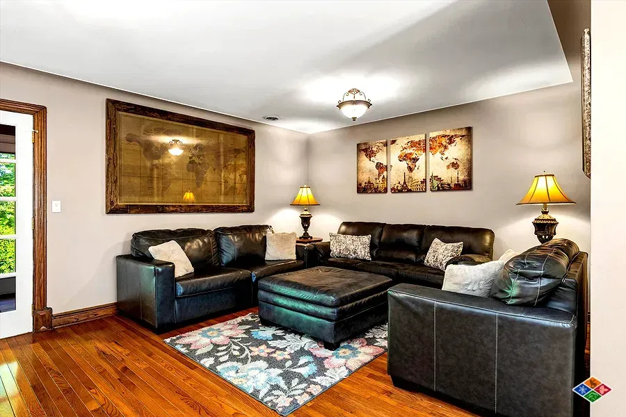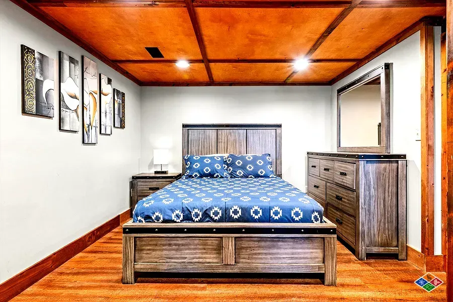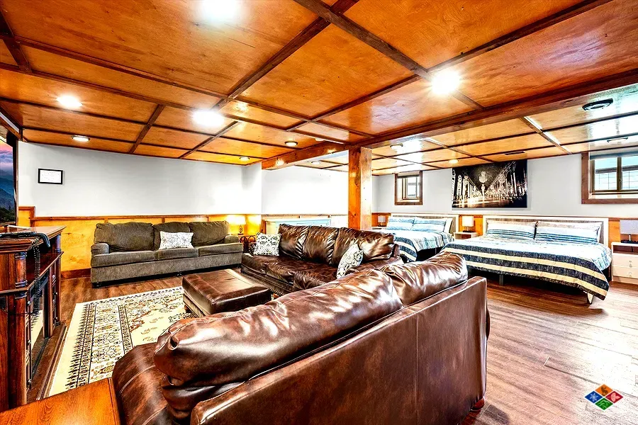 Lower Level kids room with 2 kings, 1 queen, 1 sleeper sofa and gathering area.