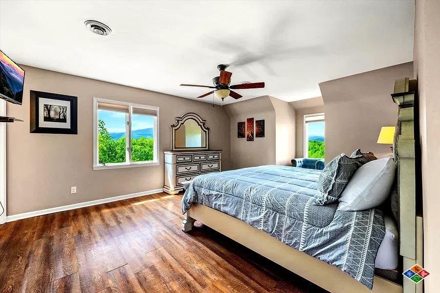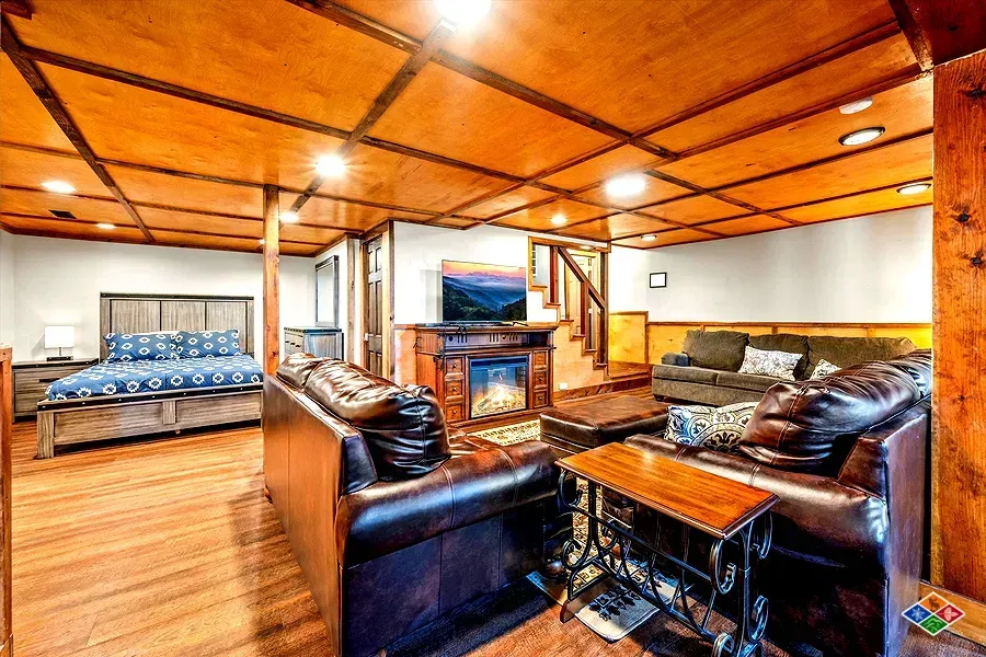 5 bedrooms with king Beds and a lower level open bedroom / sitting area with 2 kings, 1 queen and a sleeper sofa.